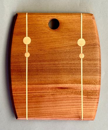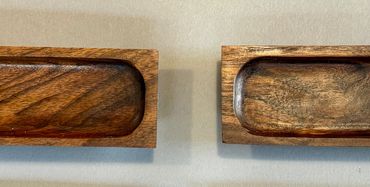 Serving boards and trays come in many sizes and shapes ranging from 12 to 36 inches in length. Working with hardwoods, we often try to capture the live edge of the wood which provides a natural and unique shape. They can also be custom made to fit a specific need.