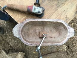 Each piece goes through many stages. Initially cut out of a log with a chain saw and rough carved to establish the basic shape. It is then set aside to dry for 6-12 months to assure that it is stable. The piece will change shape with the drying process, so that the final steps require 5 levels of re-shaping and sanding to bring it to a finished piece.